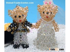 4mm bicone crystal diy beaded wedding Teddy bear charms wholesale from Chinese beaded gifts factory, custom beaded bear charms are accepted. Sold by pairs. There is no gauze on the head of girl bear.